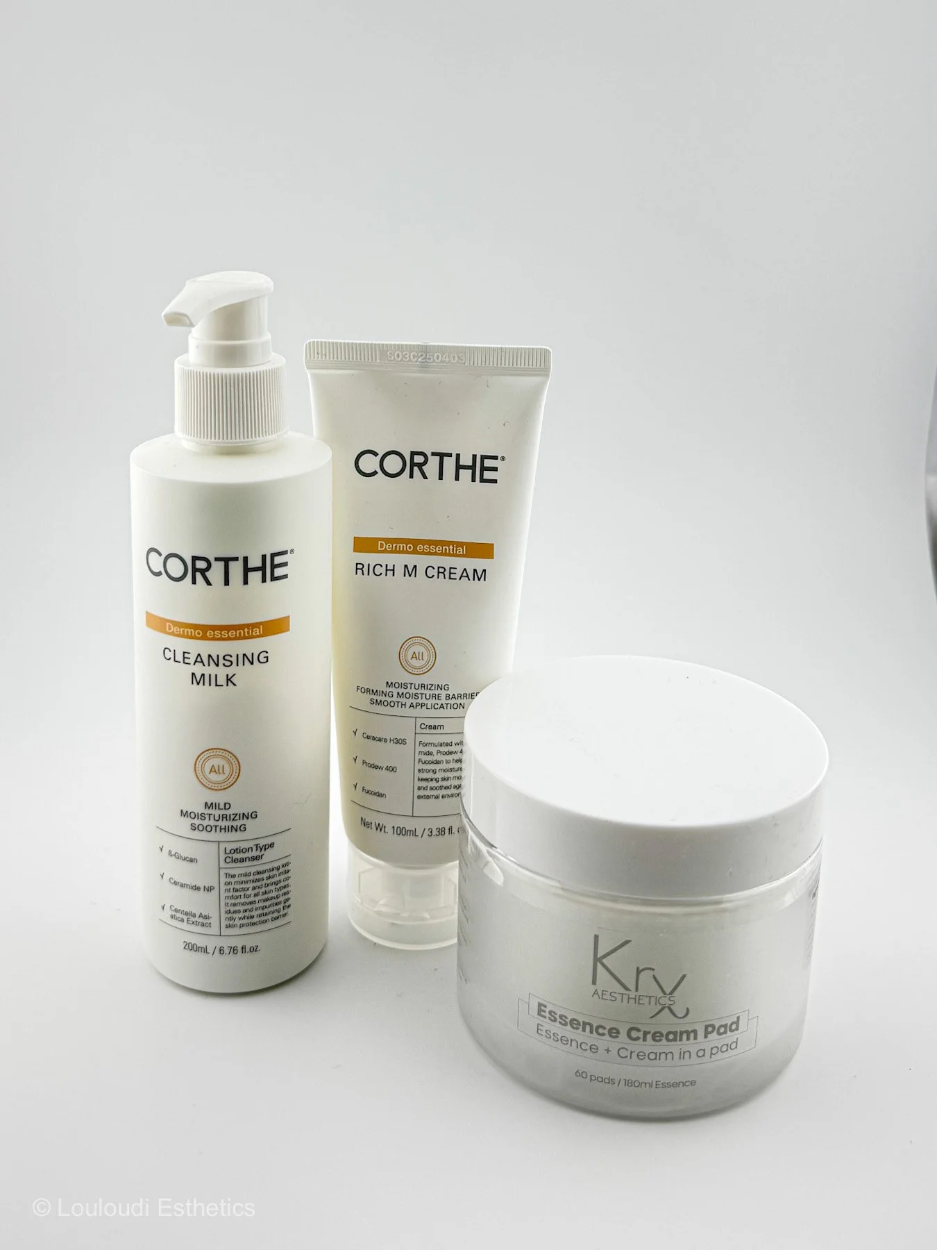 Cleanser: Water, Cocamidopropyl Betaine, Glycerin, PEG-75, Polysorbate 20, Potassium Cocoyl Glycinate, Sodium Stearoyl Glutamate, 1,2-Hexanediol, Sodium Chloride, Glycosyl Trehalose, Butylene Glycol, Hydrogenated Starch Hydrolysate, Polyquaternium-10, Panthenol, Ethylhexylglycerin, Disodium EDTA, Propanediol, Sodium Hyaluronate, Hydrogenated Polyisobutene, Hydrolyzed Pea Protein, Caprylyl Glycol, Phytosterols, Olea Europaea Fruit Oil, Squalene, Lecithin, Acetyl Hexapeptide-8, Ceramide 3, Butyrospermum Parkii, Tripeptide-1, Palmitoyl Pentapeptide-4, Palmitoyl Tripeptide-1, Copper Tripeptide-1, Hexapeptide-9, Anemarrhena Asphodeloides Root Extract, Nonapeptide-1.